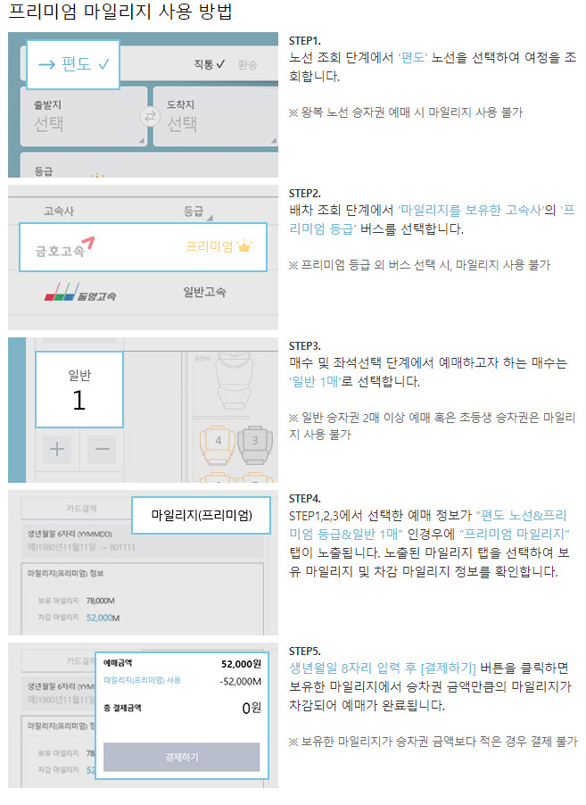 ※ 프리미엄 등급 외 버스 선택 시, 마일리지 사용 불가